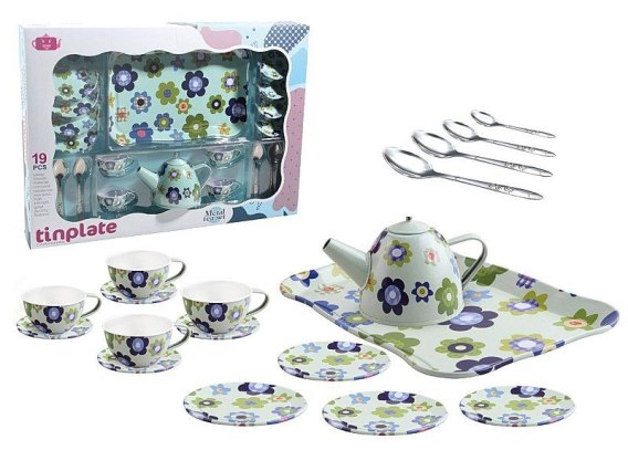 Zestaw do herbaty, metalowy, 19 części; 46x33x6cm, W/B