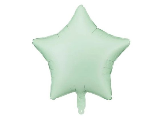 Balon foliowy matowy Gwiazdka w kolorze zielonym, rozmiar ok. 48 cm (19''). Do napompowania powietrzem i helem. Zestaw zawiera słomkę.