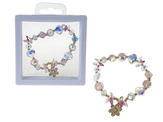 Bransoletka śred.6cm, rozciągliwa, szklane koraliki z metalowymo elementami, w ozdobnym pudełku; 9x9x2cm, W/B