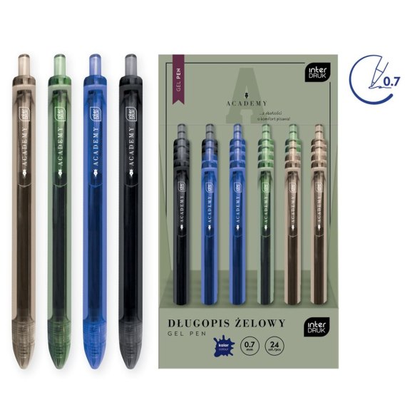 • Długopis żelowy ACADEMY 0,7mm wkład niebieski 1,0mm Interdruk (5902277346759)