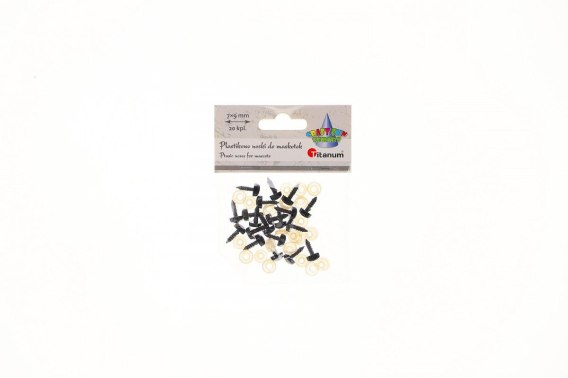 Nosy do maskotek, trójkątne, 9 x 7 mm, z mocowaniem za pomocą zapinki, czarne. 20 kompletów.