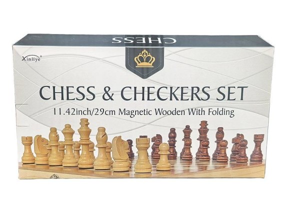 Zestaw gier, szachy i warcaby drewniane, magnetyczne; 29,5x15,3x4cm, Box
