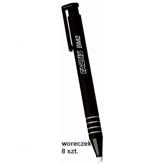 Guma w kształcie ołówka automatycznego, z precyzyjnym mechanizmem wysuwającym, długie wkłady plastikowe o średnicy 3 mm umożliwiają bardzo dokładne wymazywanie, dostępne wymienne wkłady, producent : Factis, Hiszpania