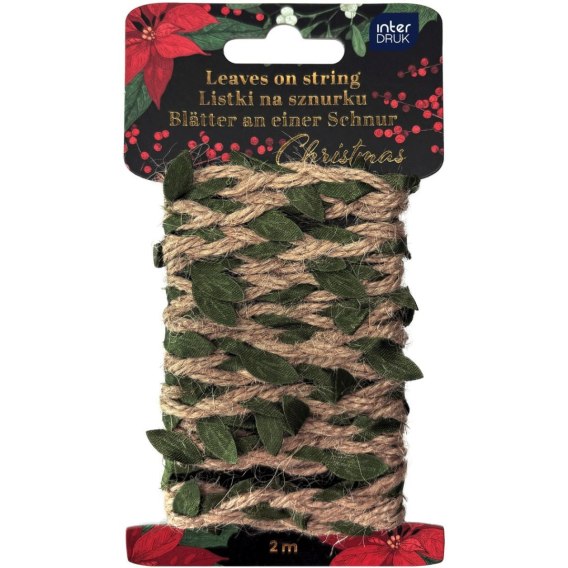 Listki na naturalnym sznurku , 2 m ,Christmas