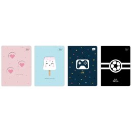 Format: A5. Liczba kartek: 16. Zadruk w kolorową kratkę. Zaokrąglone rogi. Okładka pokryta lakierem UV. Przydatne pomoce dydaktyczne na odwrocie zeszytu: ściąga z ję...