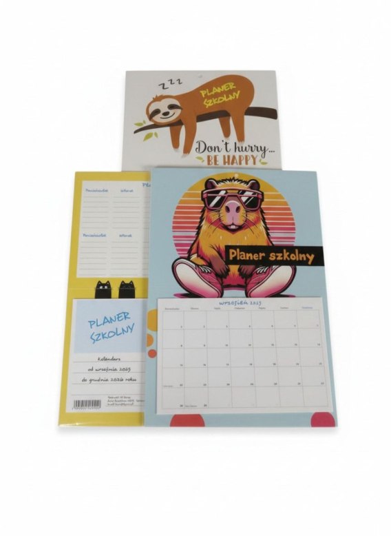 Kalendarz ścienny szkolny KAPIBARA,KOT,LENIWIEC 600mm x 300mm Jotan (trójdzielny)