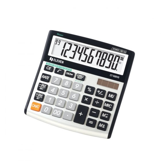 - 10-pozycyjny wyświetlacz, 3 przyciski pamięci: MRC, M+, M-, Obliczanie marży [MU], Pierwiastek kwadratowy [√], Procenty [%], Podwójne zero [00], Zmiana znaku [+/-], Obliczenia podatkowe [TAX], Sprawdź i popraw (99 kroków),