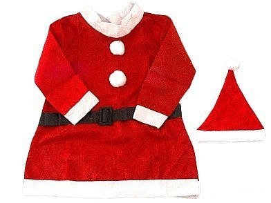 STRÓJ, PRZEBRANIE MIKOŁJA, 3 ELEMENTY (BLUZA, PASEK, CZAPKA), BLUZA DŁ.70CM; r.7-9 LAT;