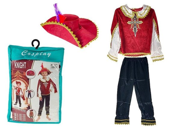 Strój karnawałowy - rycerz, 4 rozmiary: S- do 110cm, M- do 120cm, L- do 130cm, XL-do 140cm; 41x29x5,5cm