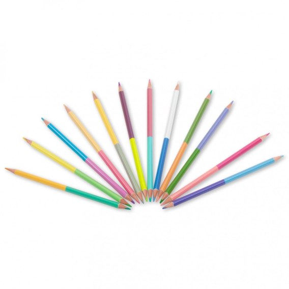 Zestaw dwunastu dwustronnych kredek w aż 24 pastelowych kolorach od Kidea. Dzięki podwójnym końcówkom o różnych kolorach, kredki są bardziej kompaktowe i zajmują mniej miejsca w piórniku, bez konieczności rezygnacji z szerokiej gamy kolorystycznej! Ich trójkątny, ergonomiczny kształt ułatwia prawidłowy chwyt i przyjemne użytkowanie. Kredki idealnie sprawdzą się na lekcji plastyki, a miękki rysik i wyraziste kolory uczynią rysowanie jeszcze bardziej przyjemnym.