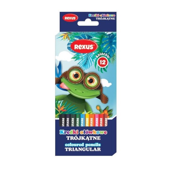 KREDKI OŁÓWKOWE TRÓJKĄTNE 12kol. / REXUS KIDS