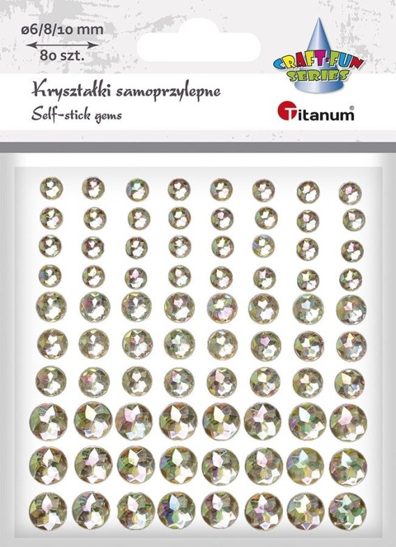 Kryształki samoprzylepne, wzór: okrągłe fasetowane, kolor: złote, średnica 6/8/10mm. 80 sztuk.