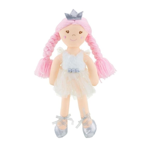 Delikatna i pełna uroku, szmaciana lalka Księżniczka Lily to doskonały towarzysz zabaw i przytulania dla każdego malucha. Jej miękkie, przyjemne w dotyku ciało sprawia, że idealnie nadaje się do noszenia, tulenia i wspólnych snów. Wykonana z atestowanych, bezpiecznych materiałów, zapewnia rodzicom spokój, a dzieciom - godziny beztroskiej zabawy. Lily zachwyca swoim bajkowym wyglądem - ma dwa różowe warkocze z miękkiej przędzy, uroczo wyszywane oczy, uśmiech i rumieńce, które dodają jej ciepła i charakteru. Jej kreacja to prawdziwe dzieło sztuki: góra sukienki wykonana jest z miękkiego eko futerka, a tiulowy dół z czterech warstw zdobionych złoto-srebrną nitką nadaje lekkości i elegancji. U pasa lśnią trzy srebrne różyczki, a całość uzupełniają srebrne baletki i błyszcząca korona.
