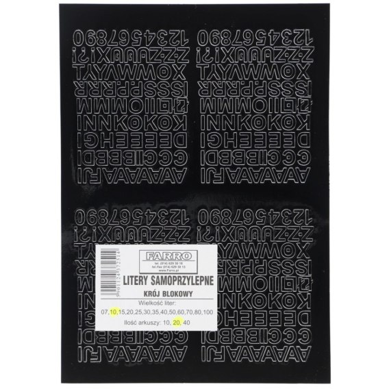 Litery samoprzylepne , rozmiar liter 10mm, kolor czarny .