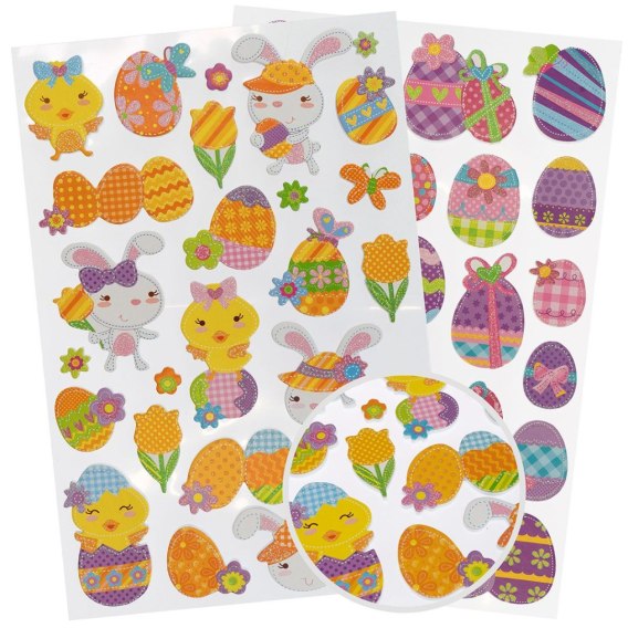 Brokatowe naklejki na arkuszu 20x20 cm przedstawiają tradycyjne wielkanocne motywy, takie jak pisanki, zajączki i kurczaczki. Brokatowe wykończenie nadaje im eleganckiego i efektownego wyglądu, który świetnie sprawdzi się w ozdabianiu kartek, zaproszeń lub koszyków.