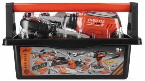 Zalety produktu: Zestaw narzędzi MEGA CREATIVE to podstawowy element wyposażenia małego majsterkowicza. Dzięki niemu każde dziecko nauczy się jak przykręcać śrubki czy poprawnie używać wiertarki! W zestawie znajdują się: poręczna walizka na narzędzia, młoteczek, wiertarka, śrubokręt, deseczki, śrubki,, nakładki. Zabawka wykonana z plastiku. Wymiary/waga/baterie Wymiary opakowania (dł. x wys. x gł.) [cm]: 28x16x14, waga opakowania (kg.) 0,44 kg. Wymiary produktu (dł. x wys. x gł.) (cm) -wiertarka 18x13x6, waga produktu bez opakowania (kg.) 0,24 kg. Produkt przeznaczony dla dzieci w wieku: 3+. Nie wymaga zasilania bateriami. Pakowany w poręczną skrzynię Pakowany w kartonie po 18/36 szt.