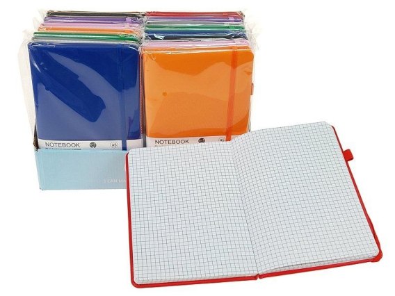 Notes A5 w kratkę, 21x14,5x1,5cm, display 16szt; 29x21,5x16,5cm, Box