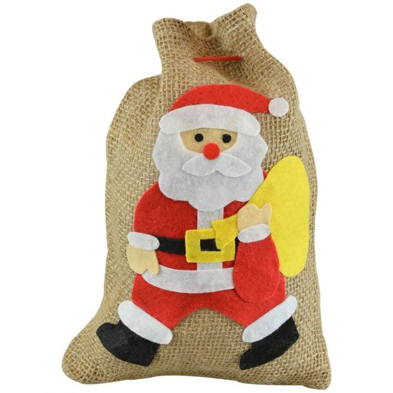 Worek na prezenty wykonany z naturalnego materiału jutowego. Na przodzie produktu znajduje się aplikacja dekoracyjna z filcu. Produkt wyposażony w sznurek ściągający umożliwiający zawiązanie worka. Worek może służyć jako element dekoracyjny lub jako wyjątkowe opakowanie prezentu. Wymiary worka to 26x20 cm.