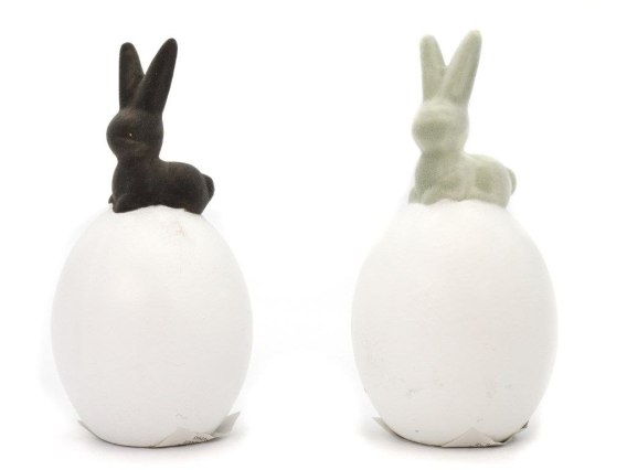 DEKORACJA CERAMICZNA JAJKO Z KRÓLIKIEM, POKRYTA AKSAMITNYM MATERIAŁEM; 7,5x7,5x15cm ; BOX ; 6/48 ;