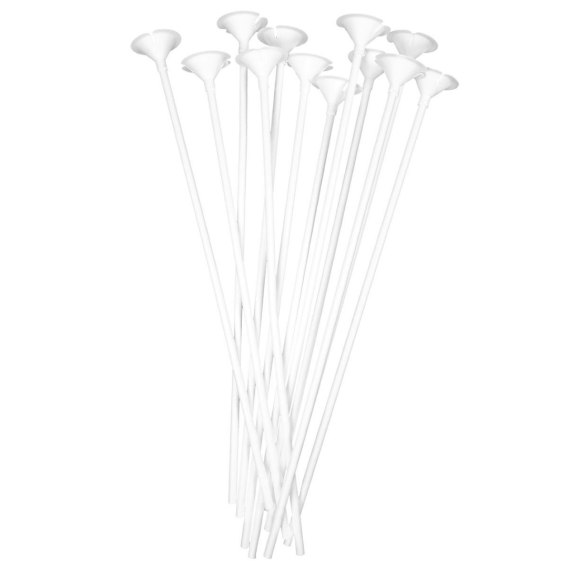 Ekologiczne, papierowe patyczki do balonów w kolorze białym. Do patyczków dołączone są koszyczki umożliwiające zamocowanie balonów. Produkt posiada certyfikat FSC®, co oznacza, że surowce wykorzystane do jego produkcji zostały pozyskane w zgodzie z odpowiedzialnym i legalnym korzystaniem ze światowych zasobów leśnych. Opakowanie zawiera 18 patyczków o długości 35 cm oraz 18 koszyczków do mocowania balonów.