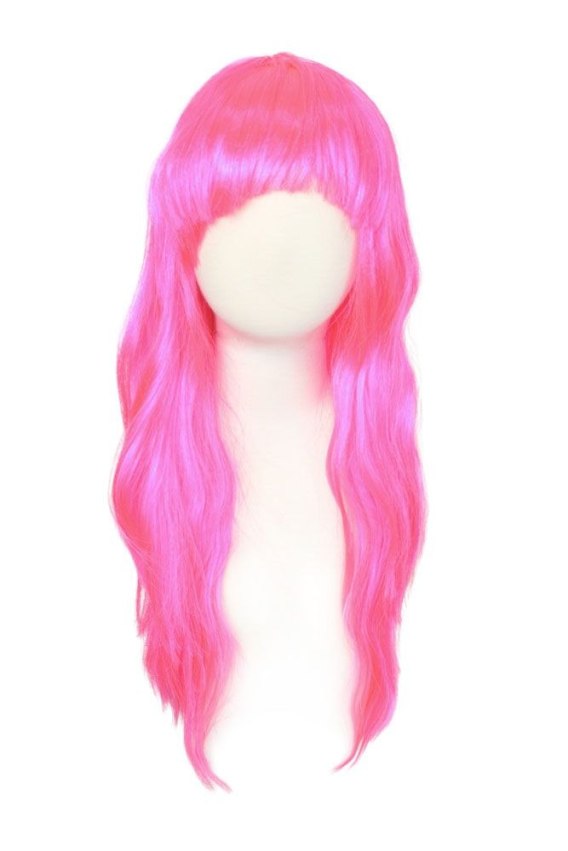 Peruka wykonana z włosów syntetycznych w kolorze różowym. Długa fryzura z grzywką. Dopełnienie stylizacji, przebrania na bal karnawałowy, sylwestrowy, halloween. Długość włosów to około 50 cm. Peruka w rozmiarze uniwersalnym.