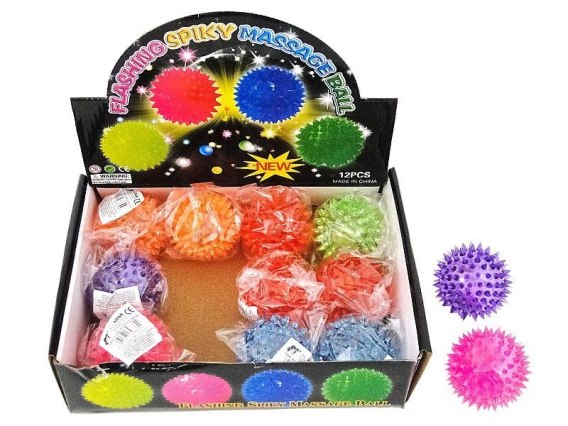 Piłeczka ze światłem, śred.6,5cm, dobrze odbijająca się, z wypustkami do masażu, display 12szt; 26x19x7cm, Box