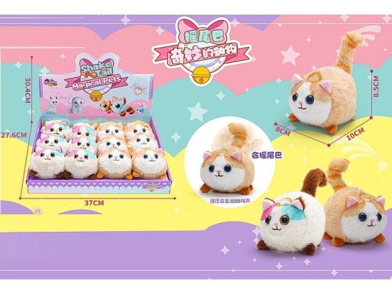 Kot pluszowy kręcący ogonem, z piszczkiem, 10x8,5x8cm, display 12szt.
