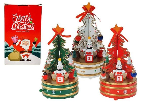 Pozytywka - karuzela z choinką, drewniana, z dźwiękiem, mix kolorów; 18x10,5cm, BOX