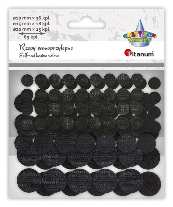 Rzepy Craft-Fun Series samoprzylepne czarne 3 rozmiary 69 szt Titanum (5903714546008)