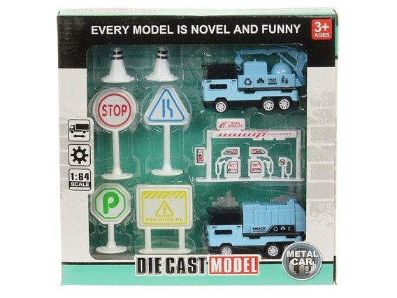 Zestaw plac budowy, pojazdy metalowe, znaki; 24x24x4,5cm, W/B