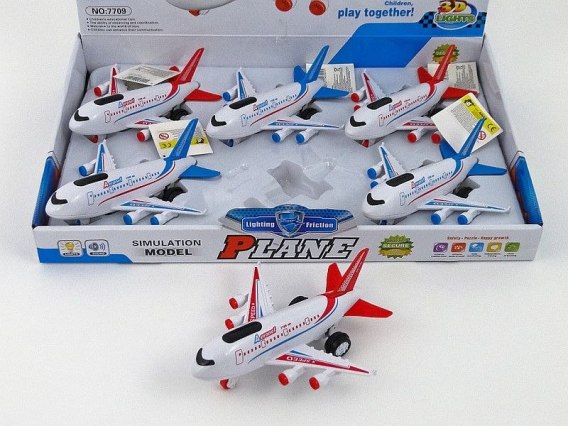 Samolot ze światłem i dźwiękiem, z napędem na koło zam, display 6szt; 46,5x30,5x7,5cm, Box
