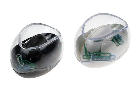 Ergonomiczny pojemnik do spinaczy biurowych z wytrzymałego plastiku, z magnetyczną rolką ułatwiającą wyjmowanie spinaczy. Antypoślizgowy spód. Dostępny w dwóch kolorach: czarnym i białym.