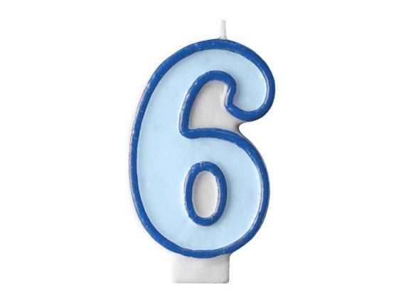 Świeczka urodzinowa Cyferka 6 w kolorze niebieskim, rozmiar 7 centymetrów.