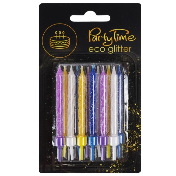 Świeczki urodzinowe z eko-brokatem (12 szt.)