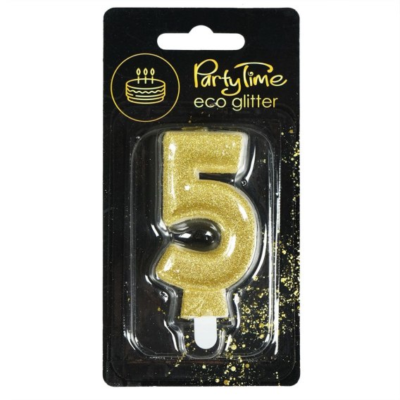 Świeczka urodzinowa eko brokat złota cyfra 5 Arpex (DS0932ZLO-5-0987)