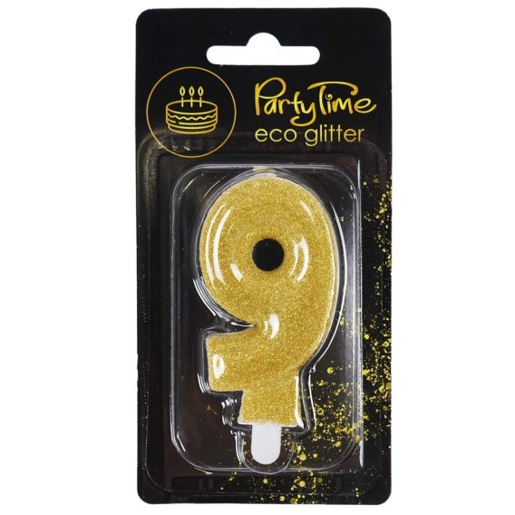 Świeczka urodzinowa eko brokat złota cyfra 9 Arpex (DS0970ZLO-9-0987)