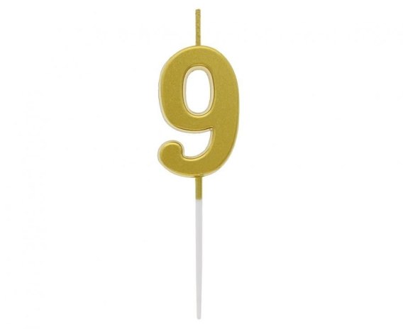 ŚWIECZKA PIKER CYFRA 9, METALICZNA ZŁOTA, 1 SZT.