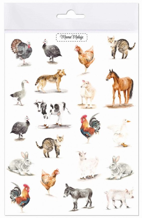 Tatuaże zmywalne Zwierzęta wiejskie zostały wykonane na podstawie ręcznie malowanych ilustracji akwarelowych. Uwzględniają szczegóły i wyjątkowy charakter każdego zwierzęcia. Na arkuszu znajduje się 20 tatuaży.