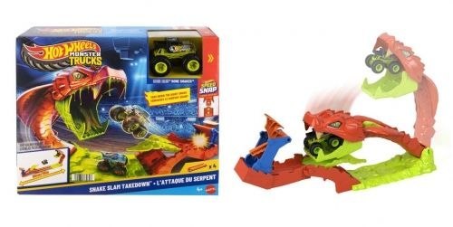 Tor wyścigowy Monster Trucks Mega skok - Nokaut węża Hot Wheels (JJN44)