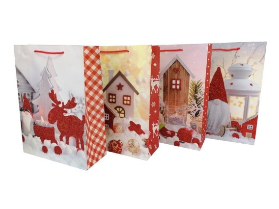 Torebka prezentowa z motywem świątecznym, brokatowa; 32x26x10cm, PPB
