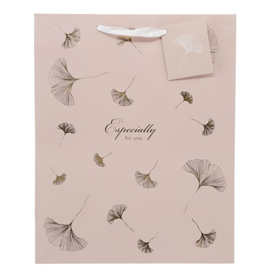 Wykonana z wysokiej jakości papieru 190 g. Eleganckie, matowe wykończenie. Wzmocniony, sztywny spód. Bilecik z miejscem na życzenia lub imię obdarowywanej osoby. Uchwyty wykonane z atłasowej wstążki. Idealna do szybkiego i efektywnego pakowania prezentów. Wymiary: 26,5x33x13 cm.