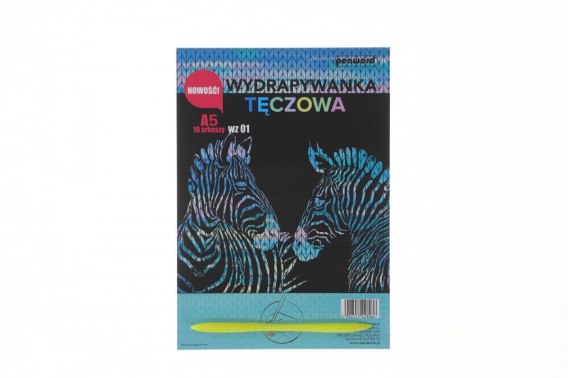 Wydrapywanka hologramowa opakowanie posiada 10 arkuszy o wymiarach 20cm x 15cm zbliżone do rozmiaru A5. Dodatkowo w zestawie znajduje się rysik dzięki któremu możemy wydrapywać naniesioną czarną farbę na hologramowym arkuszu.