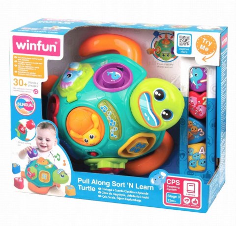 Ten uroczy żółw to sorter kształtów, który pomaga maluchom rozwijać zdolności motoryczne oraz umiejętność rozpoznawania kształtów i kolorów. W momencie dopasowania kształtów, żółw nagradza dziecko światłem i melodyjnymi piosenkami oraz wierszykami w języku polskim i angielskim. Dodatkowo, żółw posiada sznurek, dzięki któremu dziecko może go ciągnąć za sobą, co sprzyja rozwijaniu koordynacji ruchowej.