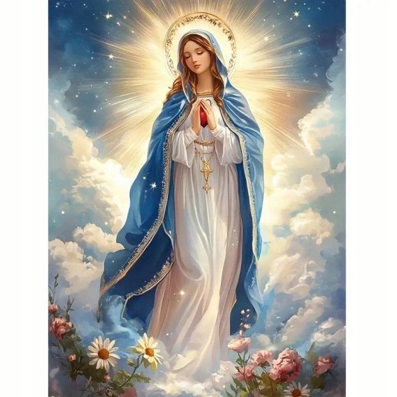 Diamentowa Mozaika Maryja Krocząca W Chmurach 30x40 Cm