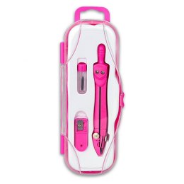 Metalowy cyrkiel z grafitem 2 mm. W komplecie pojemnik na zapasowe grafity oraz mini temperówka do grafitów. Całość w kolorowym etui z zawieszką.