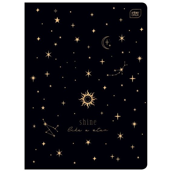Format: B5. Liczba kartek: 60. Zadruk w kratkę. Zaokrąglone rogi. Okładka z efektem złotej metalizy.